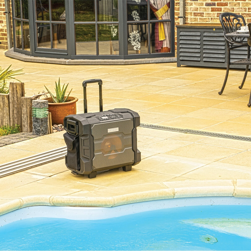 Indiferent dacã cântați sau dansați în ploaie sau lângã o piscinã, acest difuzor mobil, versatil rezistã la toate condițiile climatice și la apã (fãrã imersie). Datoritã surselor de intrare diferite, microfonului UHF și bateriei de capacitate superioarã încorporatã, aveți o libertate nelimitatã. În plus, vã încarcã dispozitivele mobile prin 2 porturi de încãrcare. Pentru spații mai mari, puteți lega în lanț pânã la 3 unitãți. Amplificarea dualã genereazã o calitate superioarã a sunetului.