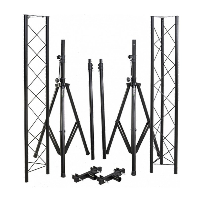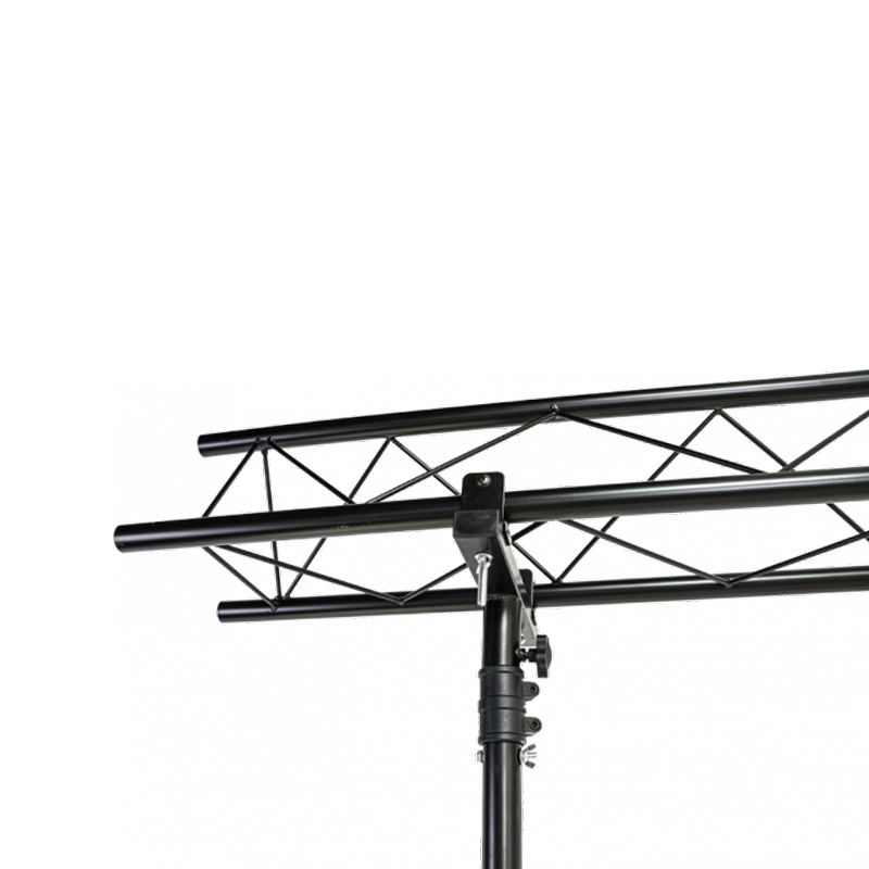 Stand de lumini profesional, ușor, din oțel negru prevăzut cu două bare transversale triunghiulare robuste de 1,5 m fiecare (2 x 1,5 m).