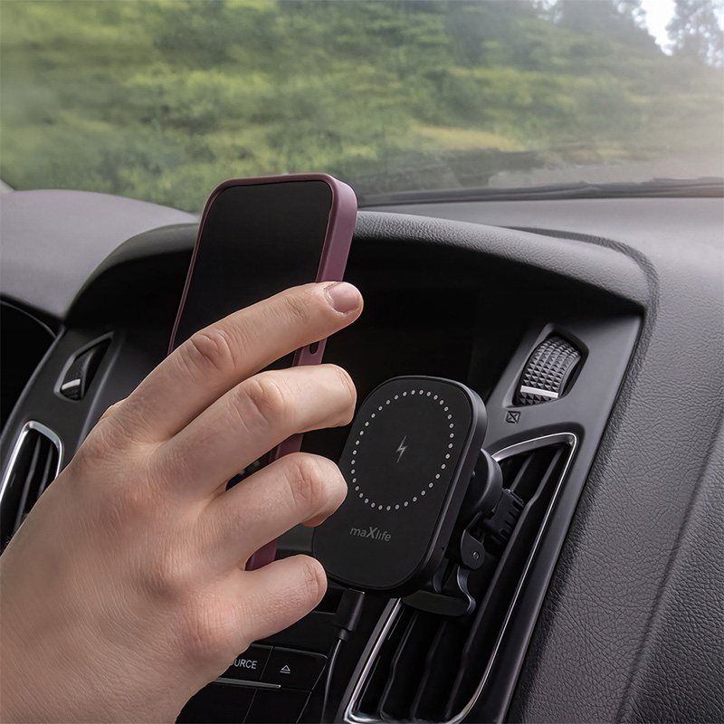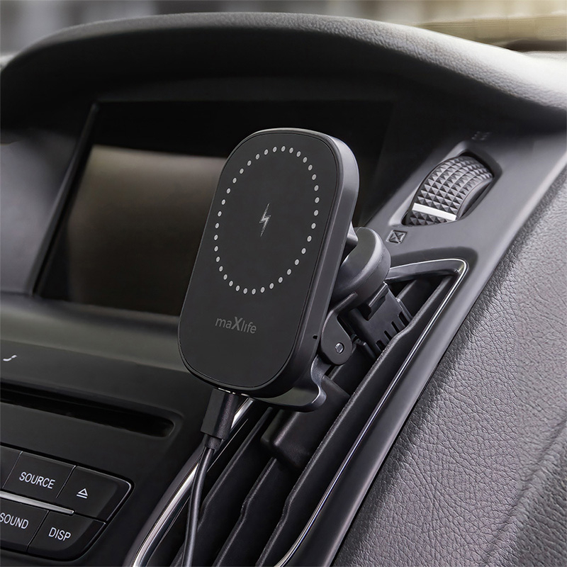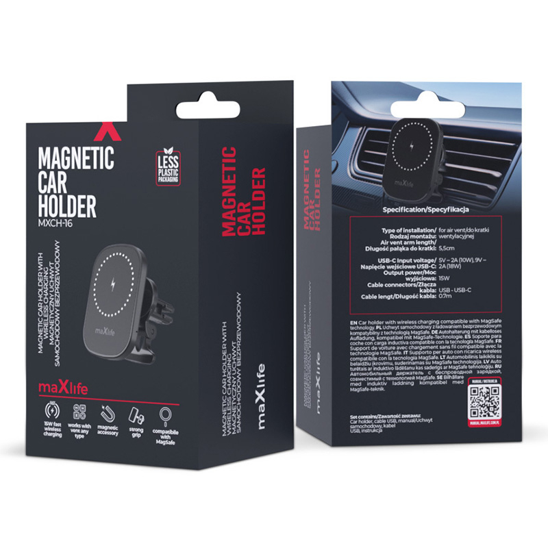 Suport auto Maxlife pentru aerisire MXCH-16 magnetic cu incarcare wireless negru 15W.