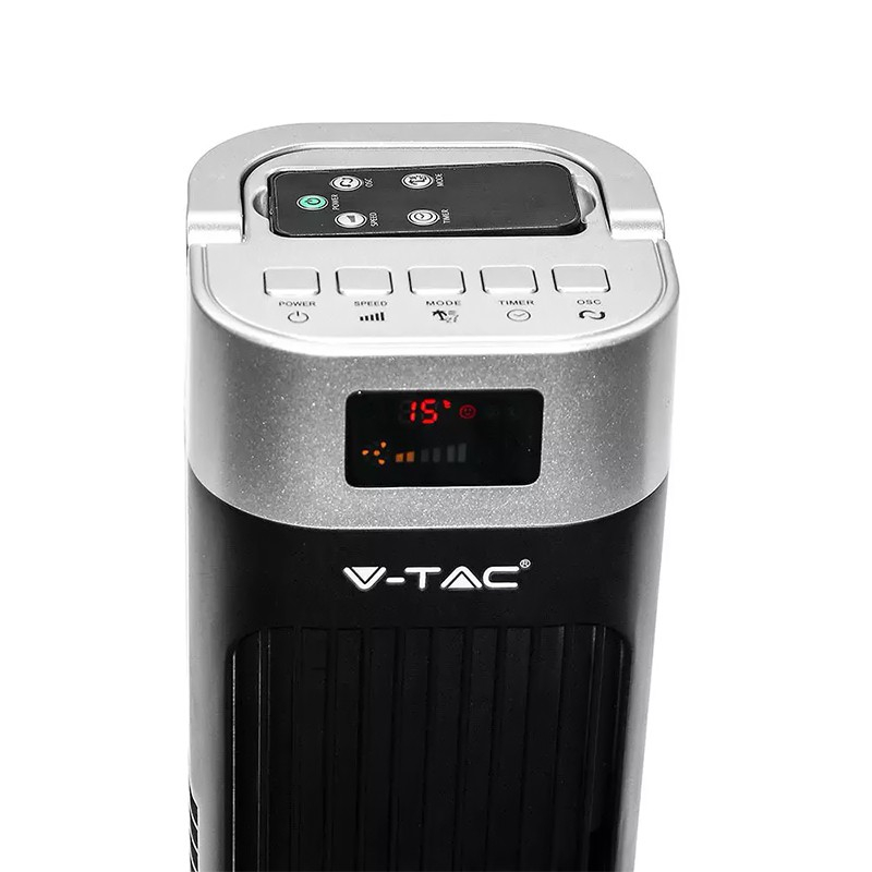 Ventilator cu afișaj de temperaturã și telecomandã. 3 viteze - scãzut, mediu, ridicat